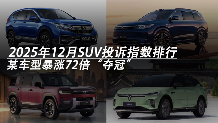 - 2025年12月SUV投诉指数排名: 某车型暴涨72倍“夺冠