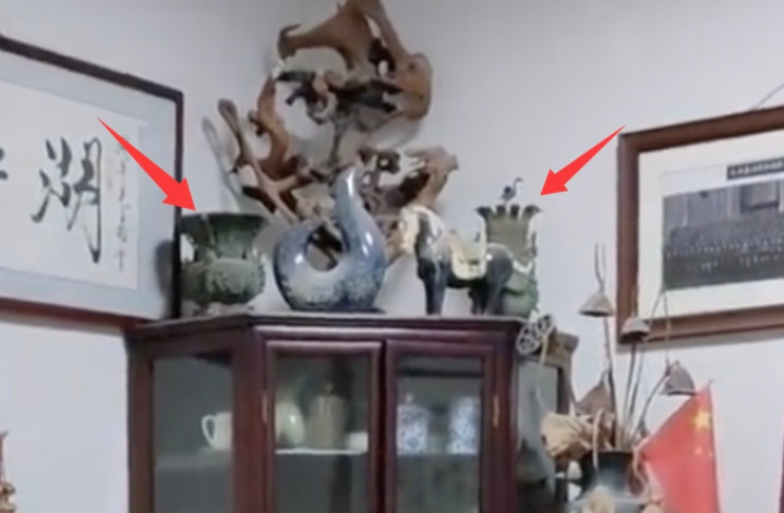 黄花梨太师椅、宋代钧窑尊、骆驼唐三彩等摆满房间,墙上书画的题名中还疑似出现“湖平”字样,而他曾公开承诺“不储藏、不轻佻、不介入藏品走动”。