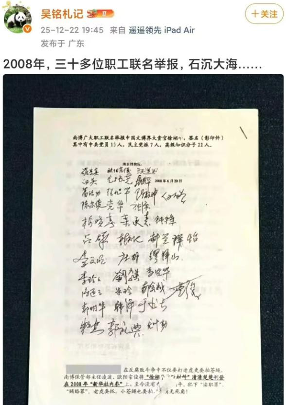 这个在南博典藏部守了一辈子库房的老东谈主,颤抖着伸开2008年的联名信,42 个签名见证着他们昔日的举报流程。