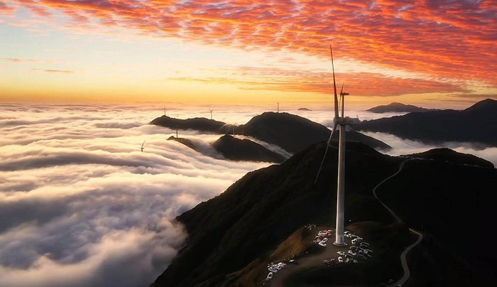 石镬坳地处钱排镇西南部,与鹿湖顶行车距离约15公里,其海拔高度向上1300米,两侧山峰连绵,山峰上建有风电场,一台台耸入云霄的“大风车”山鸣谷应,蔚为壮不雅。石镬坳是云海景不雅的高发地,冬季尤为平凡,云海多现于晨昏,喷薄而出的红日和霞光万丈的落日成为它的配景“标配”。站在峻岭之巅,如立大海之滨,看山坳云海翻腾,海浪汹涌,流泻而下,恍如江海决堤,惊涛拍岸。产生烟波浩淼的云海奇不雅,令东谈主全神关注。