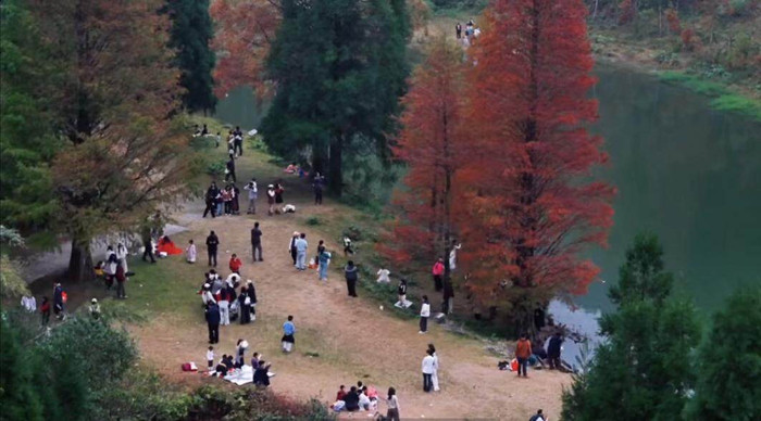 鹿湖顶地处钱排镇山口村辖区,属国营厚元林场统带。景区内有丰富的物种资源,丛林掩盖率极高,植被类型各样,有原始次生林、灌木林、阔叶林、针阔混交林、杉木林、柳杉林等。鹿湖顶的中枢不雅赏区是“鹿湖”和湖边景不雅,湖边有落羽杉、水杉、柳杉、银杏树以及成片的毛竹林、混交林等。一到秋深冬至,山表层林尽染,湖边的落羽杉由绿变黄,逐渐变为红色,如同打翻的调色盘。五彩斑斓、静谧唯好意思的山野景不雅,倒影湖中充满立体感、梦幻感,灿艳醉东谈主,使东谈主宛如跻身童话梦幻。