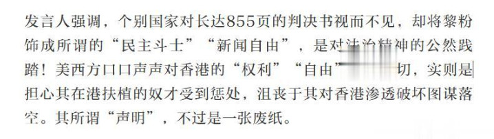 他们从不合我方国内的坐法作歹鼎力包庇,却偏巧盯着中国香港的功令案件横加干与。