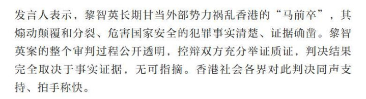 中海社交部同步发声,明确指出黎智英案老到香港特区里面事务,任何外部势力无权干与。