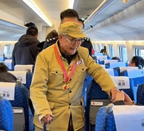 95岁抗好意思援朝老兵乘首发高铁,感受时间速率